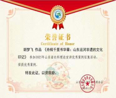 近日,由山东省社会科学界联合会组织编纂的《山东省“社科专家走基层”案例选编》由新华出版社正式出版发行。研究院胡梦飞副教授宣讲的案例《舟楫千里书华章:山东运河非遗的文化印记》成功入选。